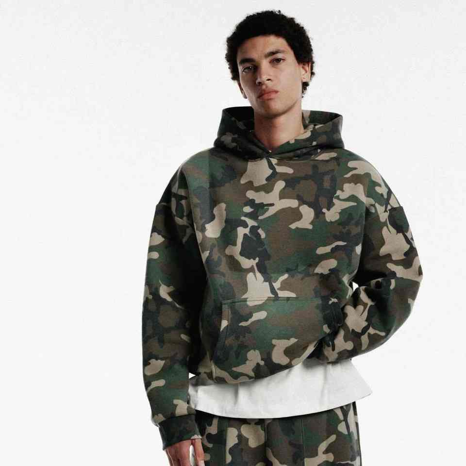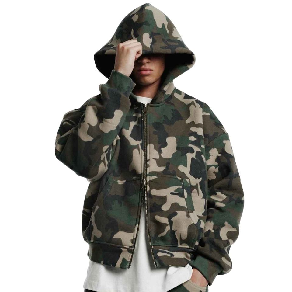 Sudadera con capucha para hombre, personalizada, de algodón, con hombros caídos, estampado integral, corte holgado, camuflaje, estilo vintage, con cremallera, en oferta