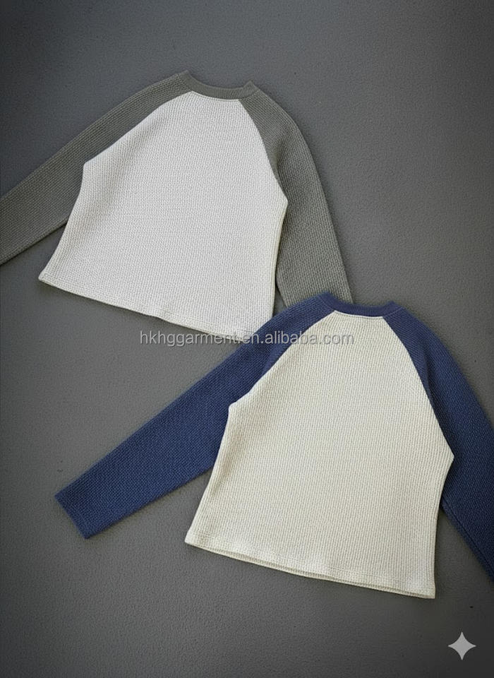 Sudadera Gráfica Personalizada con Estampado DTG, Tejido Waffle, Manga Raglán Larga, Estilo Urbano, Térmica