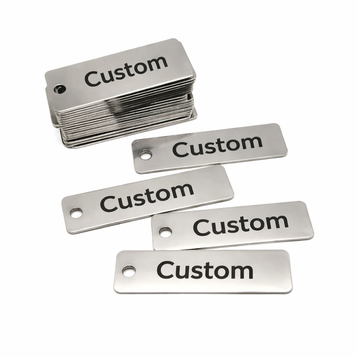 Etiquetas Rectangulares de Metal Duraderas Personalizadas con Grabado, Impresión UV, Dos Orificios, Placas en Blanco para Estampado, Regalos de Bienvenida Modernos