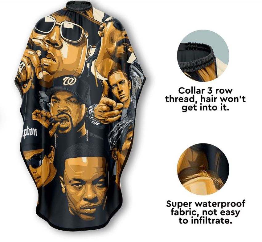 Capa de peluquero de poliéster duradera personalizada, impresión de transferencia por sublimación, diseño impermeable, fusión sin costuras para uniformes de peluquero, ropa de trabajo