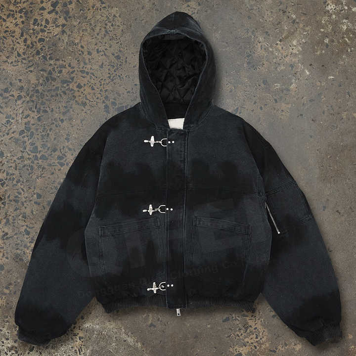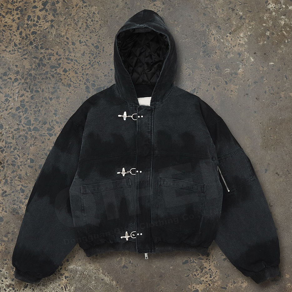 Custom Dye Wash Duck Canvas Firefighting Fireman Broche Hebilla Vintage Hombres Trabajador Ropa DE TRABAJO Chaquetas de bombardero con capucha