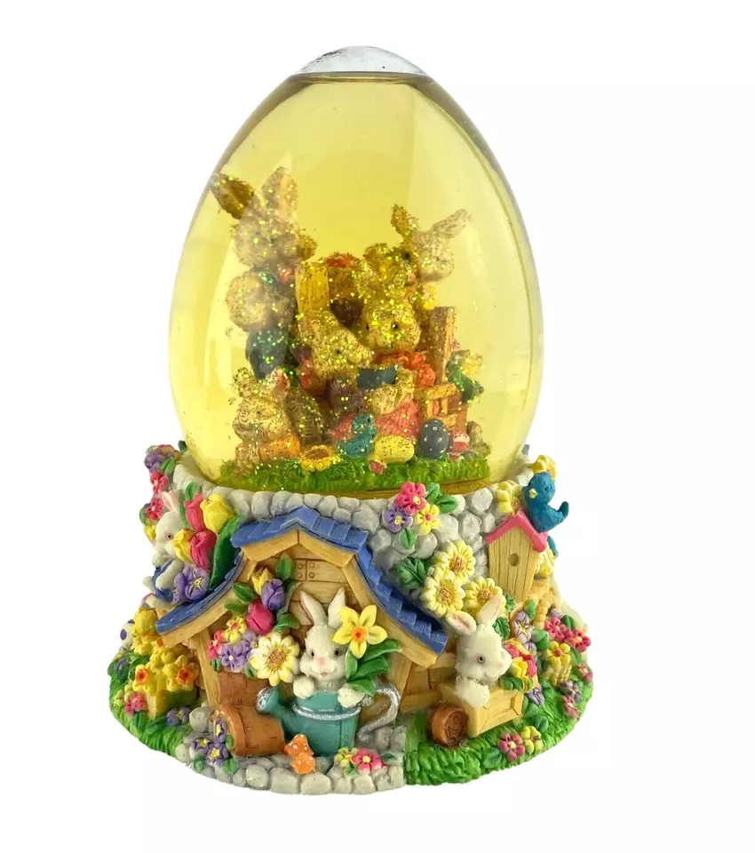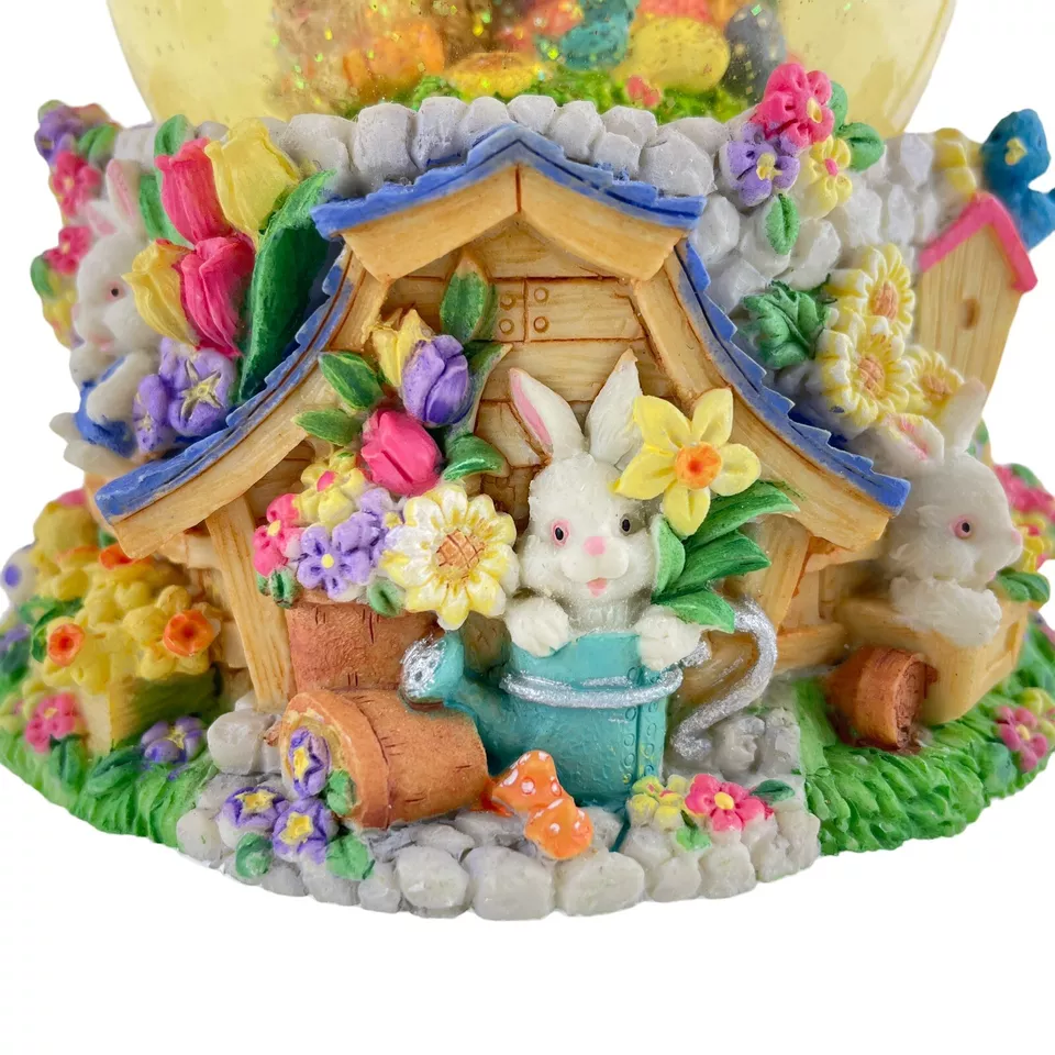 Escultura de Conejo de Resina Personalizada para Pascua, Globo de Nieve Musical, Decoración para el Hogar, Estatua de Conejo de Pascua, Decoración Festiva con Brillo Dorado, Globo de Agua