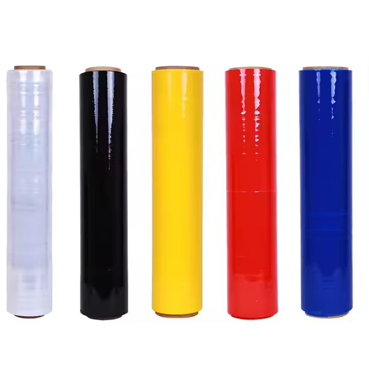 Rollo de envoltura de película elástica de fundición LLDPE a prueba de humedad suave brillante colorido ecológico personalizado para envolver palés Promoción de supermercado