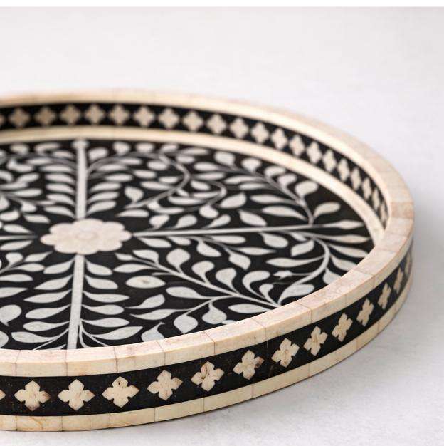 Perfecta para regalar y decorar el hogar, esta elegante bandeja con incrustaciones de hueso