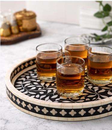Descripción:Perfecta para regalar y decorar el hogar, esta elegante bandeja con incrustaciones de hueso