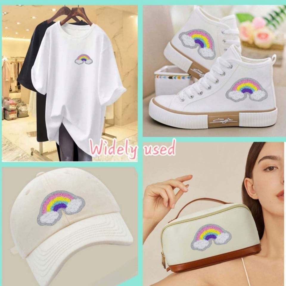 Lentejuelas Bordadas Personalizadas Ecológicas, Autoadhesivas, con Diseño de Arcoíris, para Reparación de Ropa, Bordado de Prendas con Chenilla