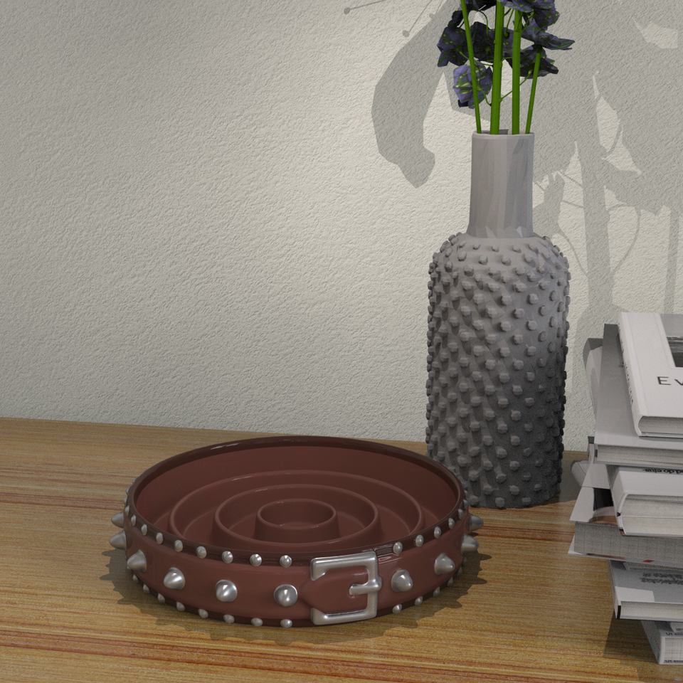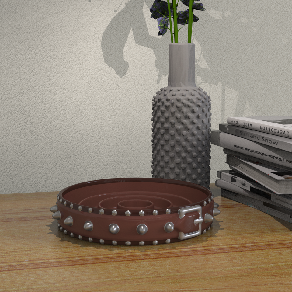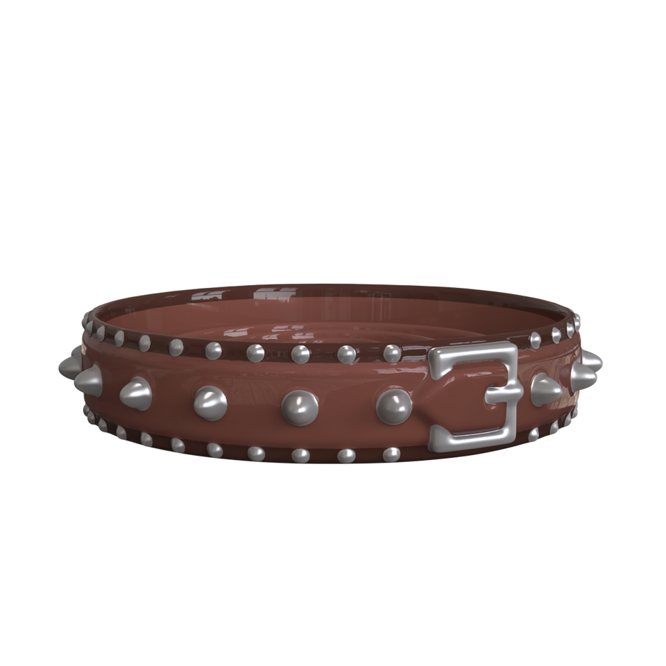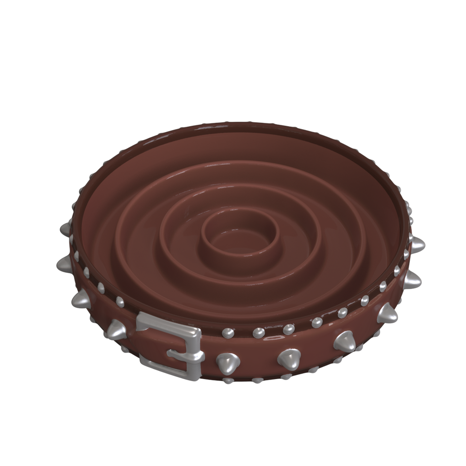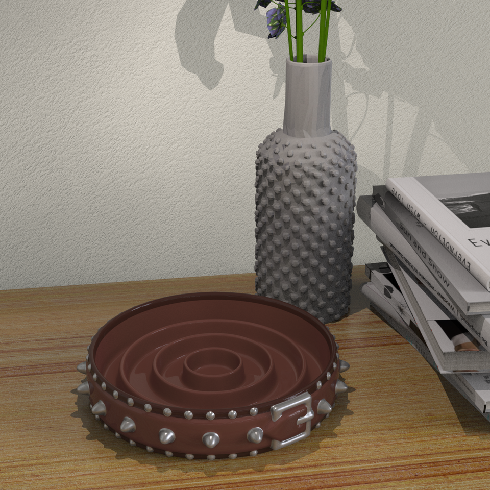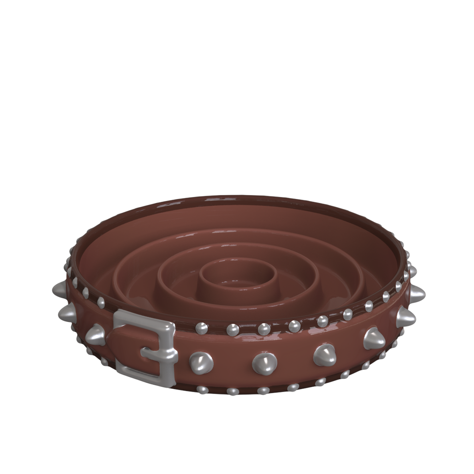 Comedero Lento para Perros, Ecológico, Duradero, Moderno, con Hebilla Plateada de Porcelana, Collar con Púas Marrón Oscuro, Elegante Plato para Comida de Mascotas