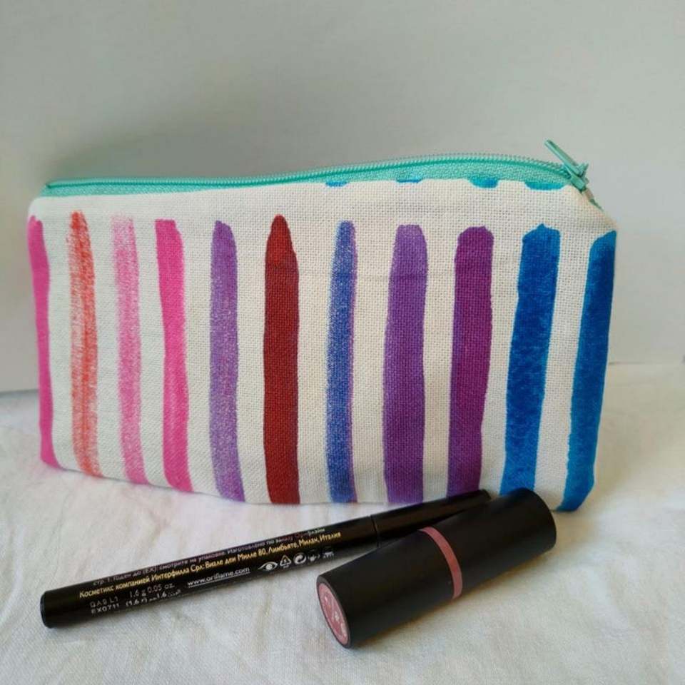 Bolsa de Maquillaje Plegable Ecológica Personalizada con Rayas de Arcoíris, Bolsa de Viaje Portátil de Lona de Algodón para Mujer, con Cierre, Estilo Boho
