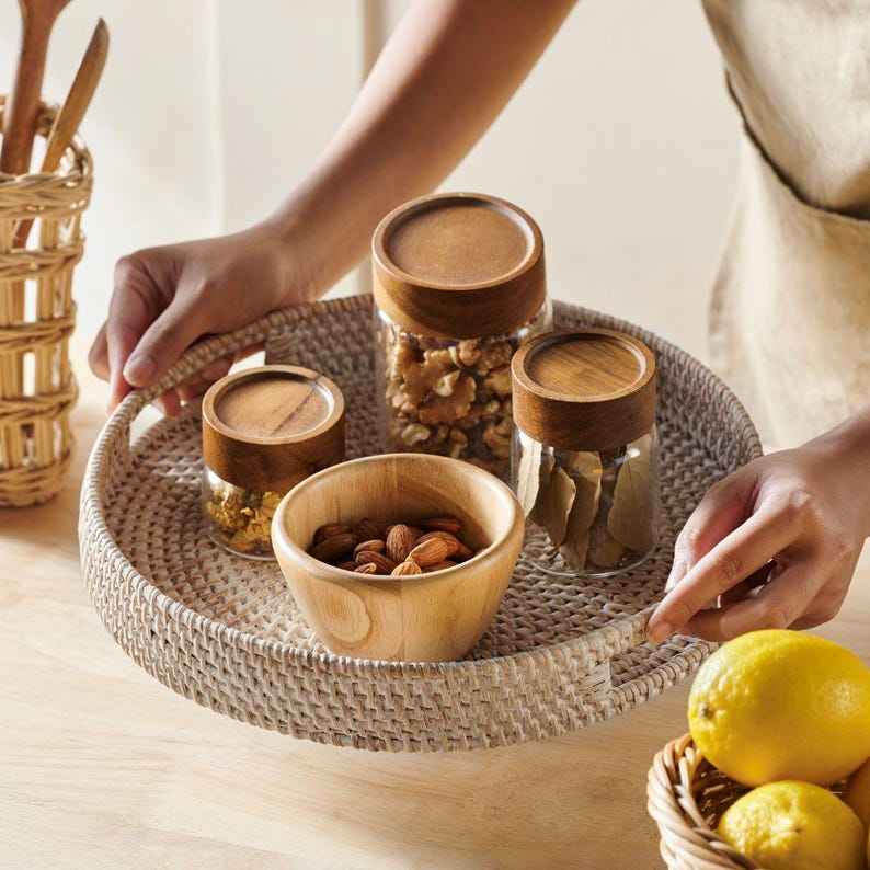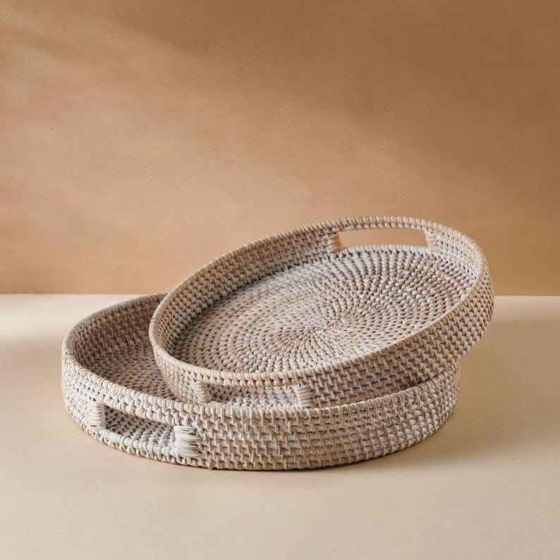 Bandeja de Servicio de Ratán Ecológica Personalizada, Precio al por Mayor, Bandeja para Servir Comida en Restaurantes