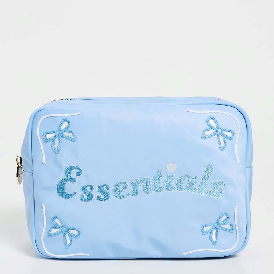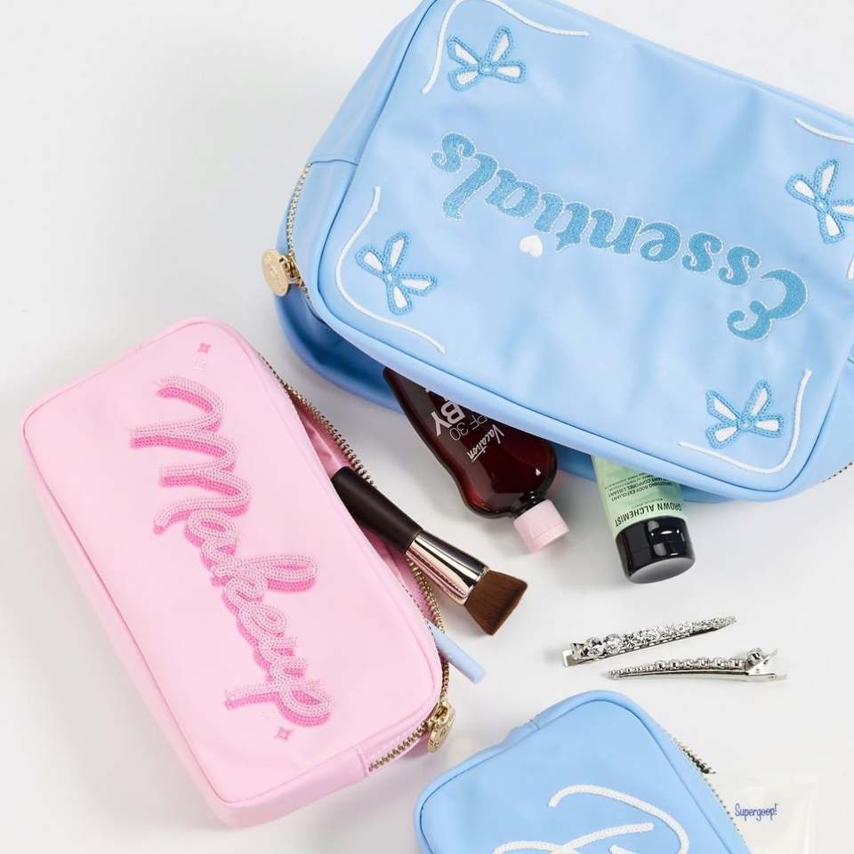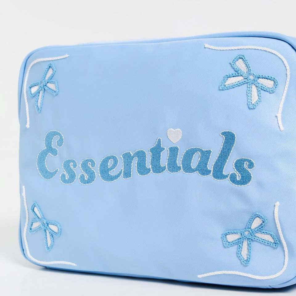 Bolsa de Maquillaje Personalizada, Ecológica, Reutilizable, Portátil, de Nailon Azul Claro Impermeable, con Cierre, Logotipo Personalizado, Bolsillos Interiores Bordados