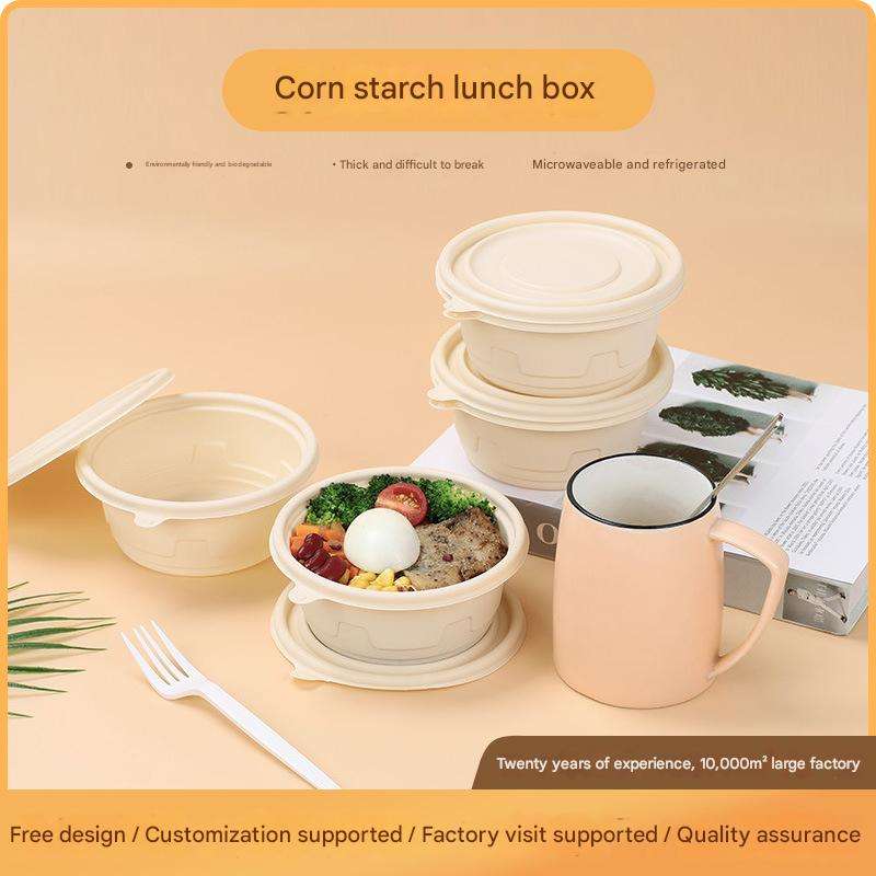 Tazón de Sopa Desechable Biodegradable de Almidón de Maíz, Ecológico, Apto para Microondas, con Tapa, 800 ml, para Comida para Llevar