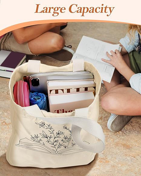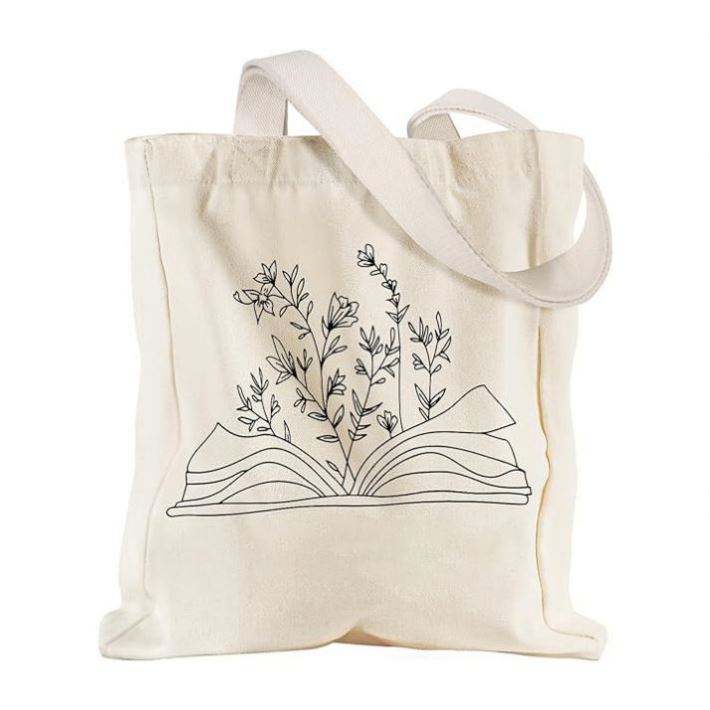 Bolsa de Compras Ecológica Personalizada, Reciclable, con Bolsillo, Bolsa de Lona de Algodón con Estampado Floral para Mujer, Diseño 2024