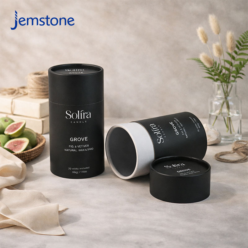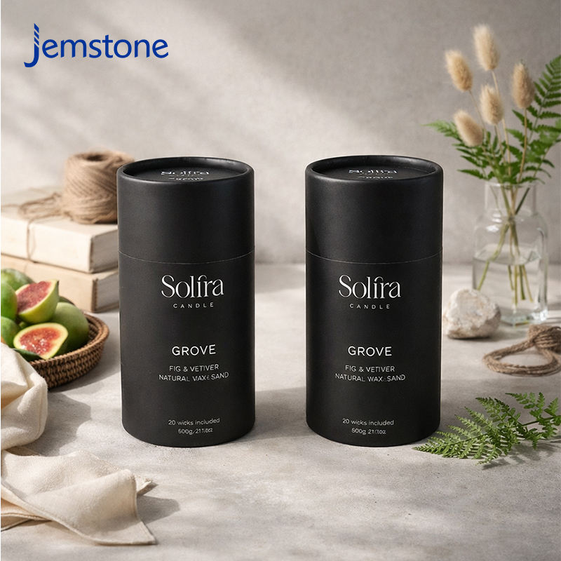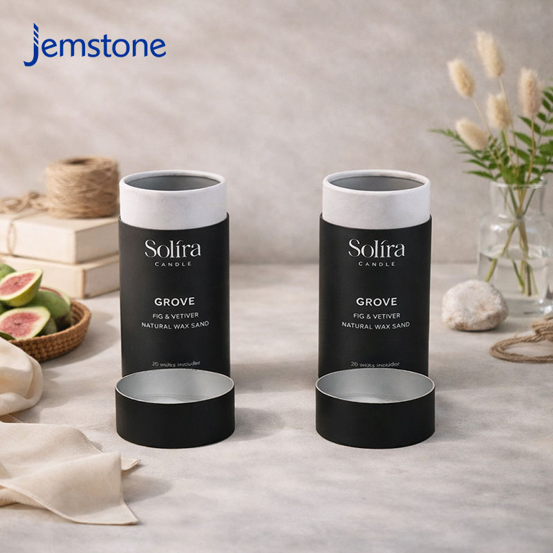 Caja de Cartón Kraft para Velas Ecológicas Personalizadas, Tubo Cilíndrico para Aceite de Perfume, Revestimiento de Aluminio, Tubo de Papel Negro para Envasado de Velas