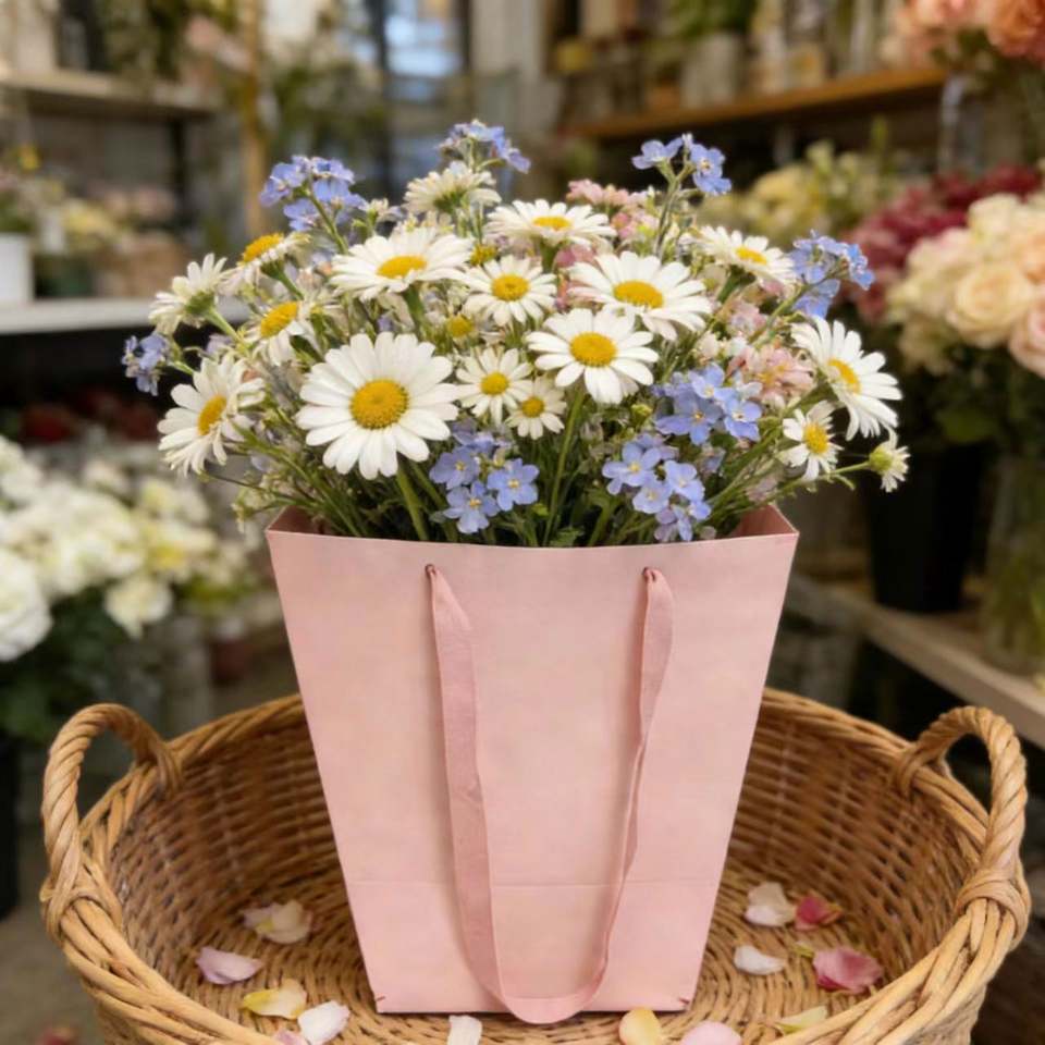 Bolsas de Papel Kraft Trapezoidales Rosas Biodegradables y Ecológicas Personalizadas para Empaque de Flores