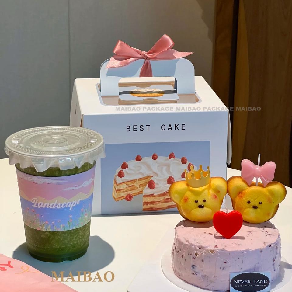 Cajas de pastel de panadería blancas de embalaje de pastel de lujo transparente de cartón ecológico personalizado con ventana de Pvc transparente