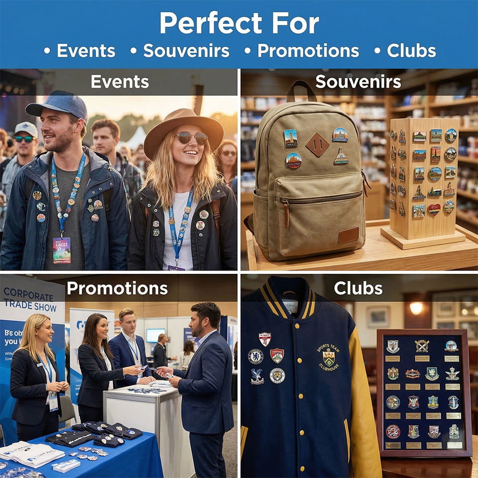 Aplicación:Regalo promocional, recuerdo, evento, insignia corporativa, insignia de club