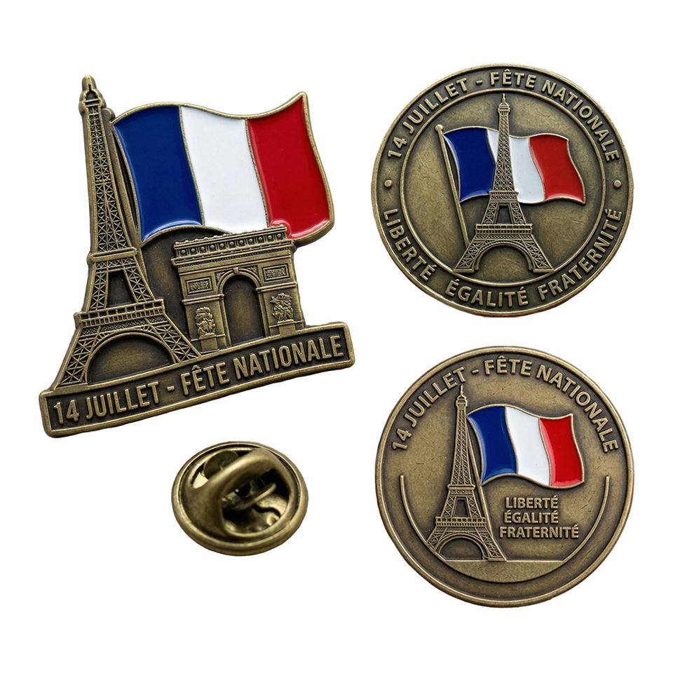 Pin de Esmalte Duro Personalizado de la Torre Eiffel, Souvenir de París, Pin de Solapa de Esmalte Suave con la Bandera Francesa, Insignia Metálica Conmemorativa del Día Nacional