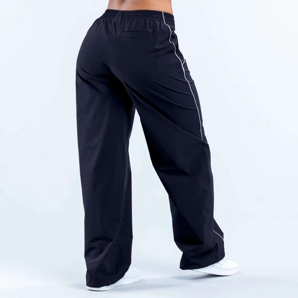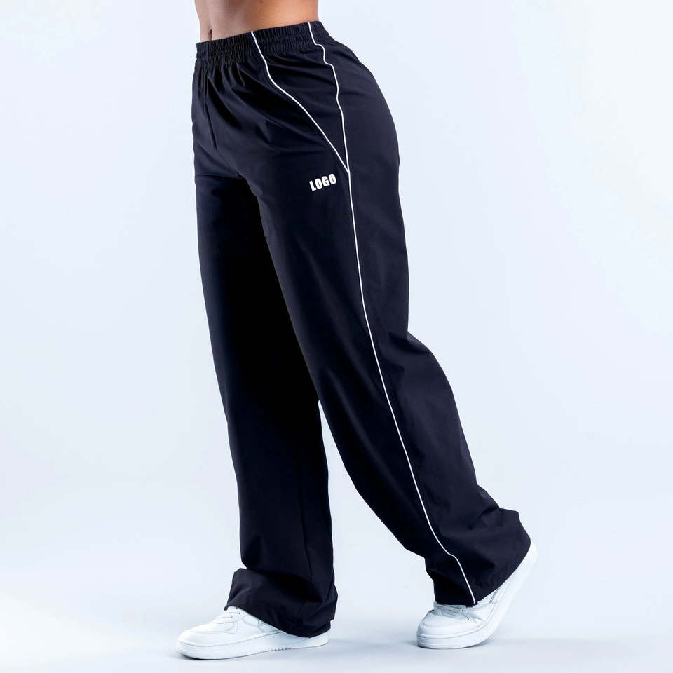 Pantalones Deportivos de Pierna Ancha con Cintura Elástica Personalizada y Cordón Ajustable para Mujer, Pantalones Deportivos con Ribete en Contraste para Mujer