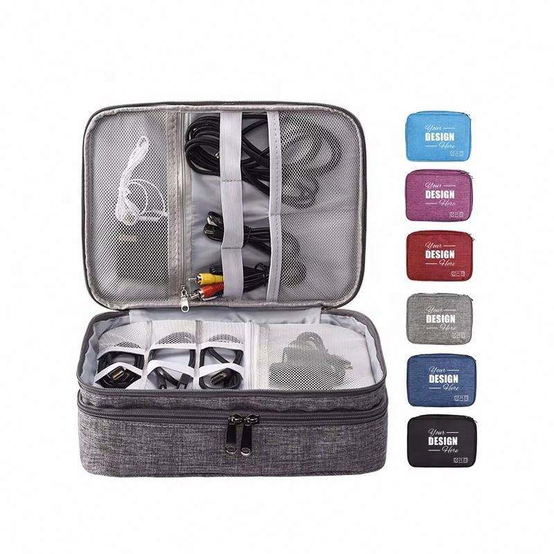 Organizador de Electrónicos Personalizado, Bolsa de Viaje Impermeable para Cables, Almacenamiento de Doble Capa para Teléfono, Cargador, Banco de Energía
