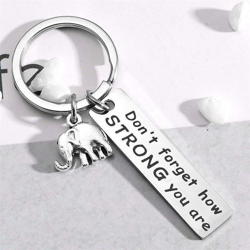 Llavero Personalizado de Elefante, Nunca Olvides Cuán Fuerte Eres, Joyería de Fuerza, Regalo para Amigos y Familiares, Llaveros Metálicos Inspiradores