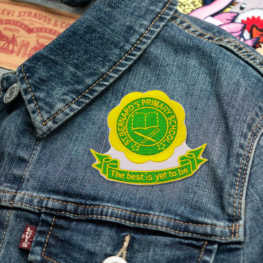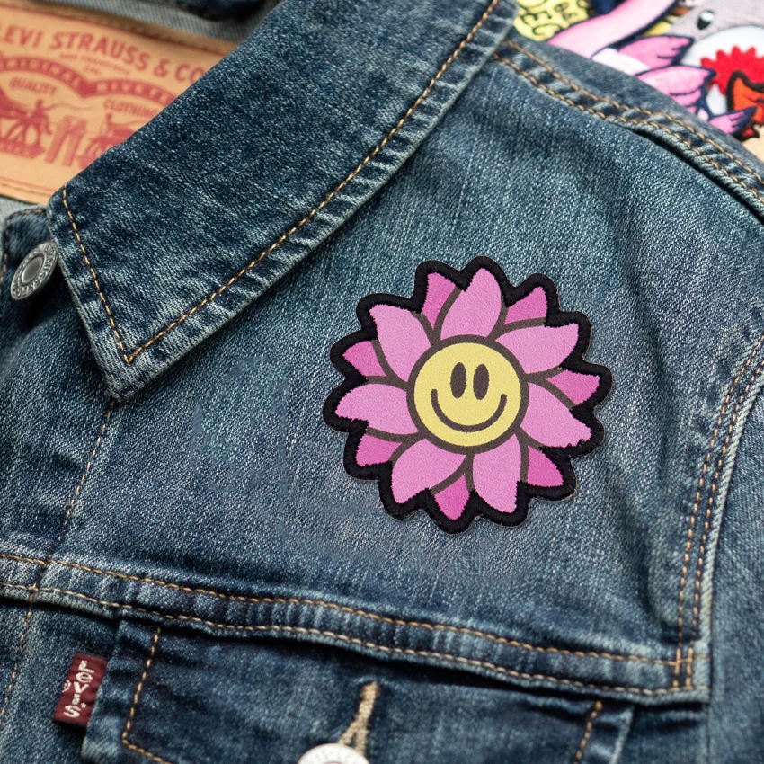 Tela de chenilla en relieve personalizada, logotipo del arco iris, nuevo diseño Guess You, parche bordado de dibujos animados, forma de flor de corazón para ropa