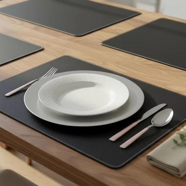 Mantel Individual de Cuero Genuino con Relieve Personalizado para Restaurante, Resistente a Olores, Resistente, Duradero, Impermeable y Fácil de Limpiar