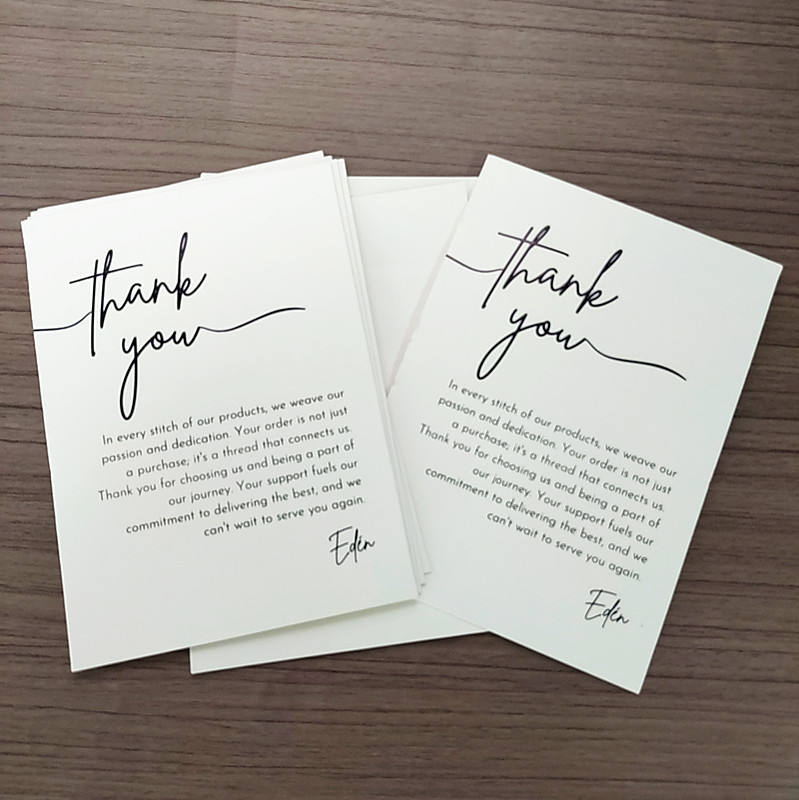 Tarjetas de Agradecimiento Personalizadas con Relieve y Lámina Dorada - Tarjetas de Inserción de Lujo con Estilo Escrito a Mano para Marcas de Ropa y Moda