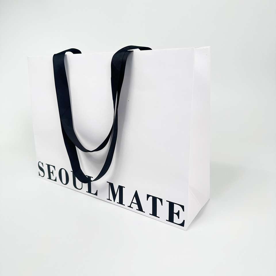 Bolsa de Papel Blanca Resistente a la Humedad, Ecológica, con Logotipo Grabado Personalizado, Asa de Cinta, Estilo de Lujo para Compras de Ropa