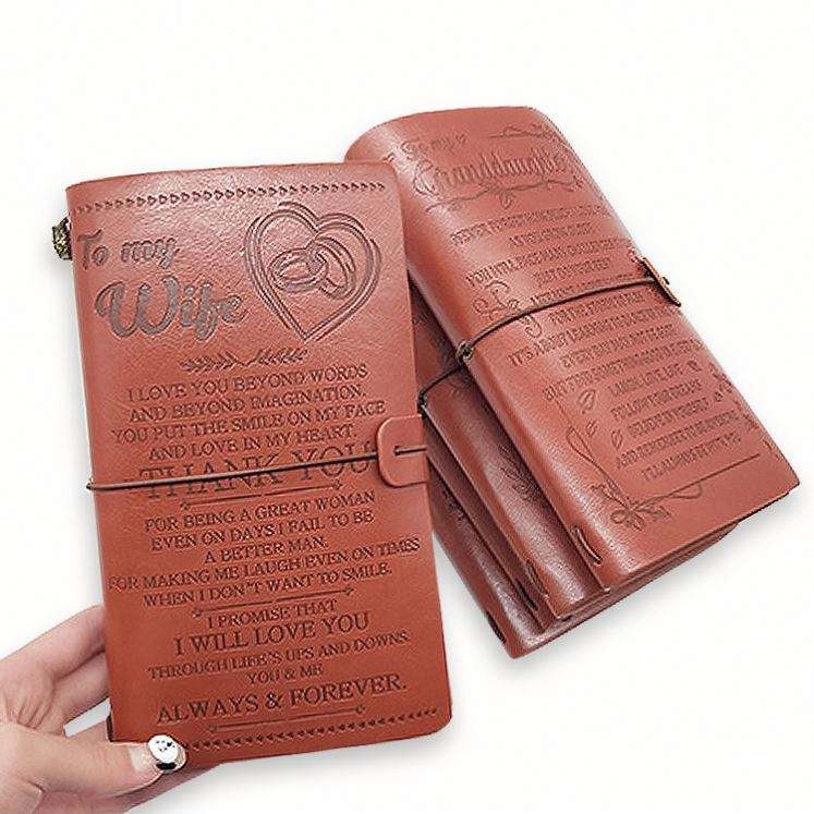 Libreta de Recuerdos con Logotipo Grabado Personalizado, Diario Retro, Libreta de Cuero Sintético, Libreta de Viajero