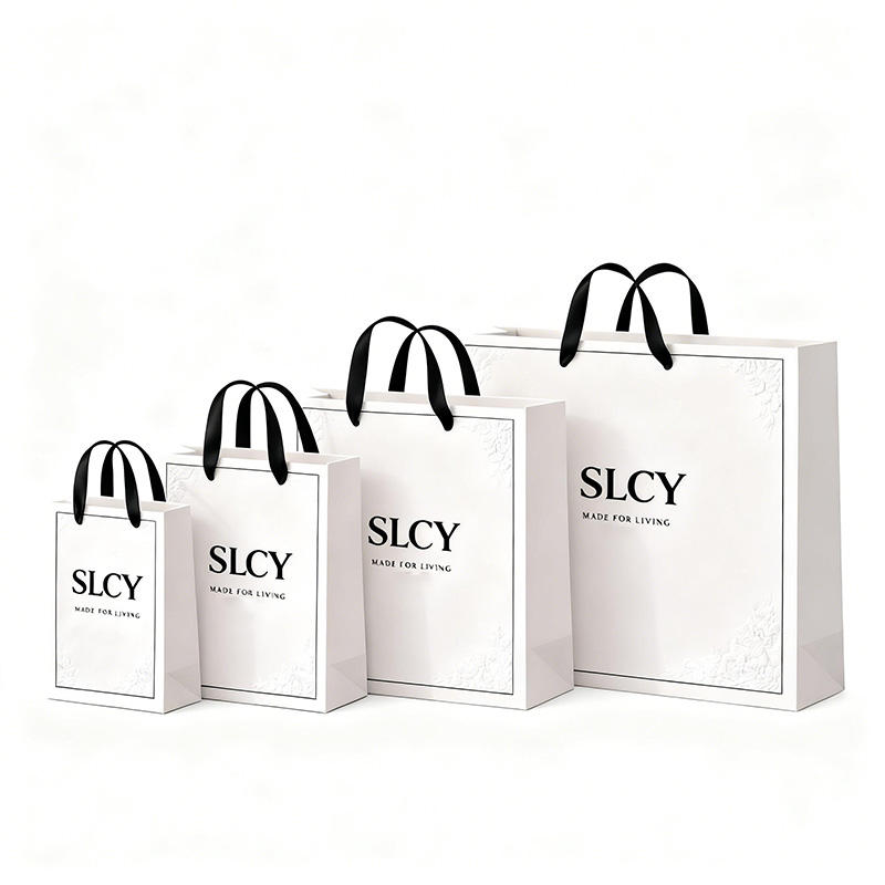 Bolsas de Compras Personalizadas con Relieve, Asas de Cinta, Impresión de Logotipo, Bolsas de Regalo de Lujo para Cosméticos, Bolsas de Papel para Mini Perfumes