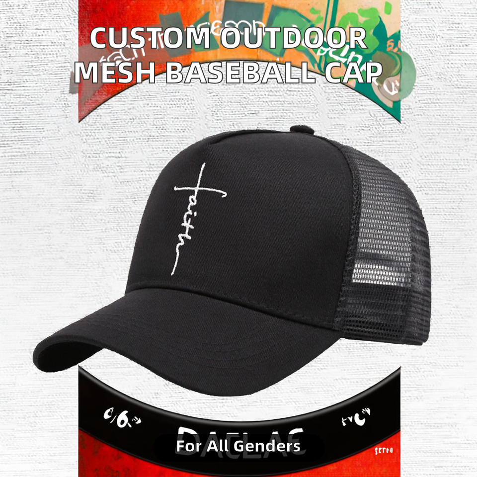 Gorra de Béisbol Deportiva de 5 Paneles con Bordado Personalizado, Malla Deportiva para Exteriores, Color Sólido, Patrón de Letras, Ajustable, Unisex, Poliéster/Algodón