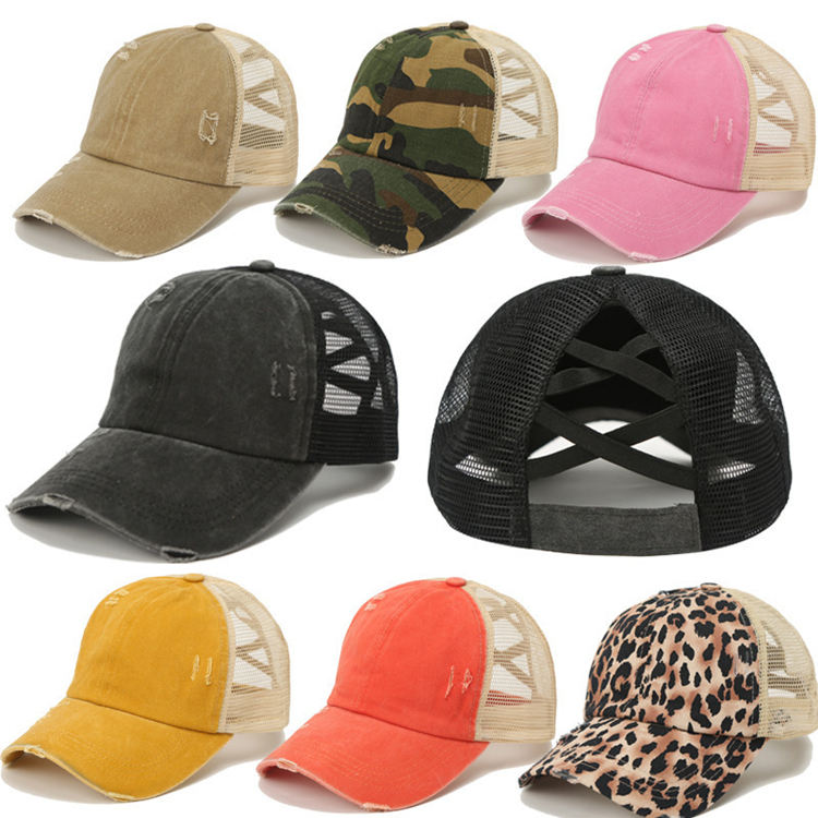 Nombre del producto:2020 Amazon Venta caliente Nuevo lavado de malla Back Ponytail Caps Mujeres Sombreros