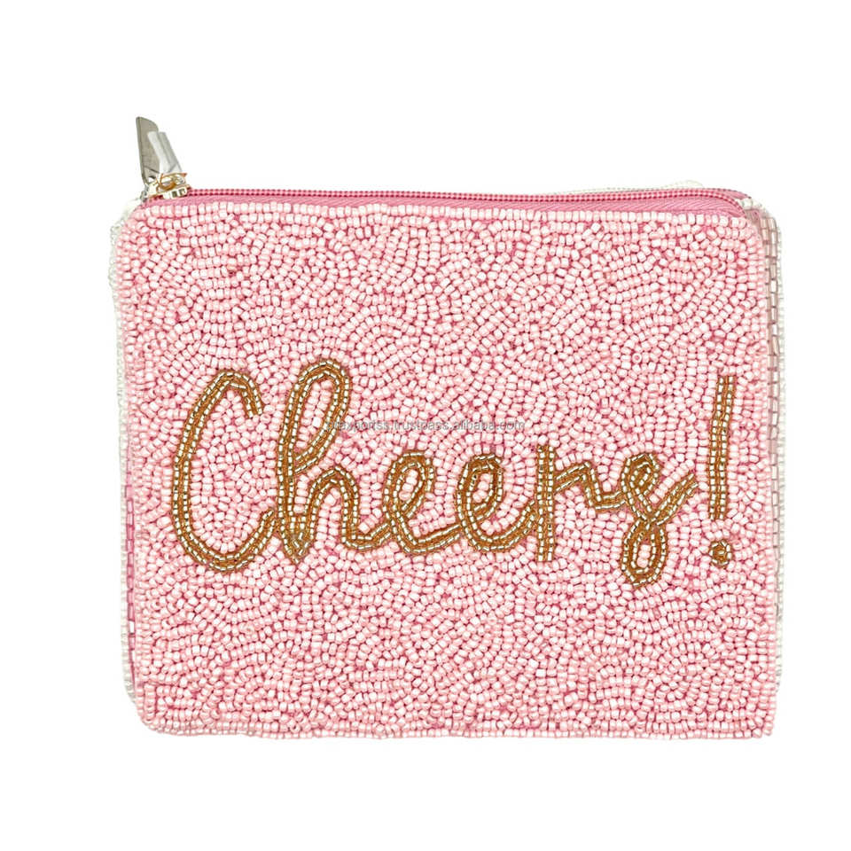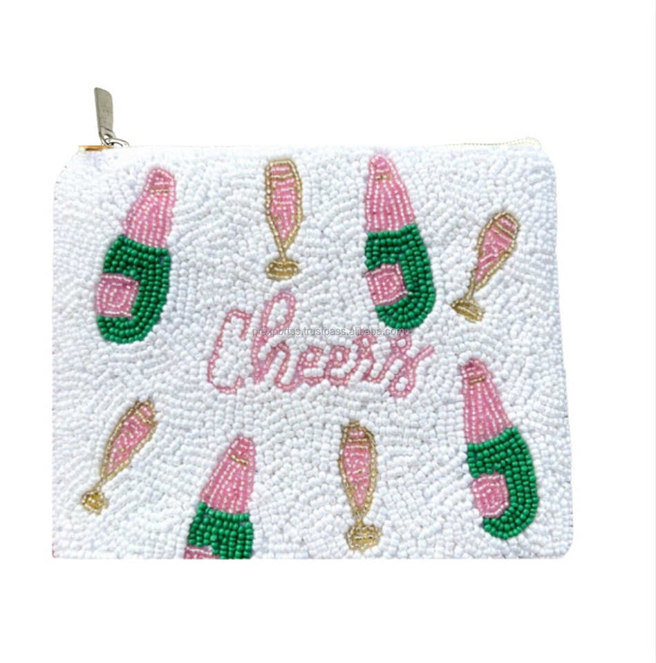 Monedero de tela de algodón bordado con cuentas personalizado al por mayor para niñas, con iconos de cebra y motivos florales, hecho a mano, con cremallera