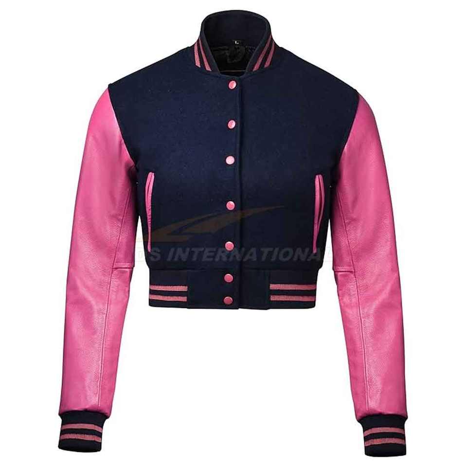 Chaqueta Universitaria Corta Bordada Personalizada para Mujer, Chaquetas de Lana y Cuero de Primera Calidad, Precio de Fábrica al por Mayor OEM