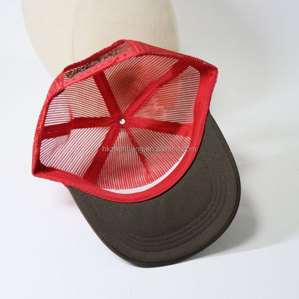 Gorra Trucker Personalizada con Bordado Completo en Malla Roja y Marrón, Ajustable con Cierre a Presión, Ultra Transpirable para Verano y Actividades al Aire Libre