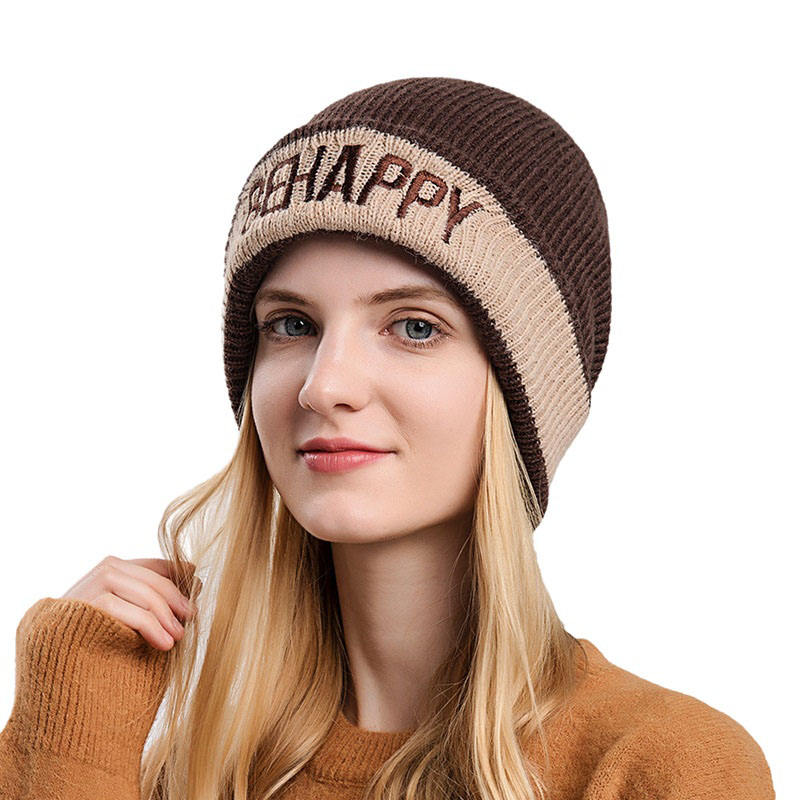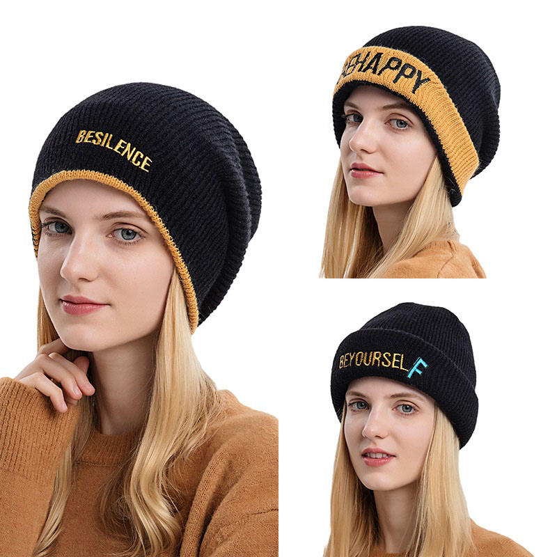 Gorro con eslogan y letras bordadas personalizado para mujer, gorro de invierno de punto acanalado cálido