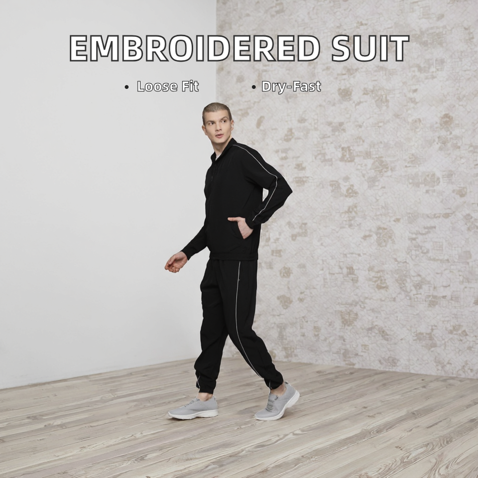Conjunto Deportivo de Dos Piezas para Hombre, con Capucha, de Felpa Francesa, con Logotipo Bordado Personalizado, Reversible, de Alta Calidad, Talla Grande, Color Negro