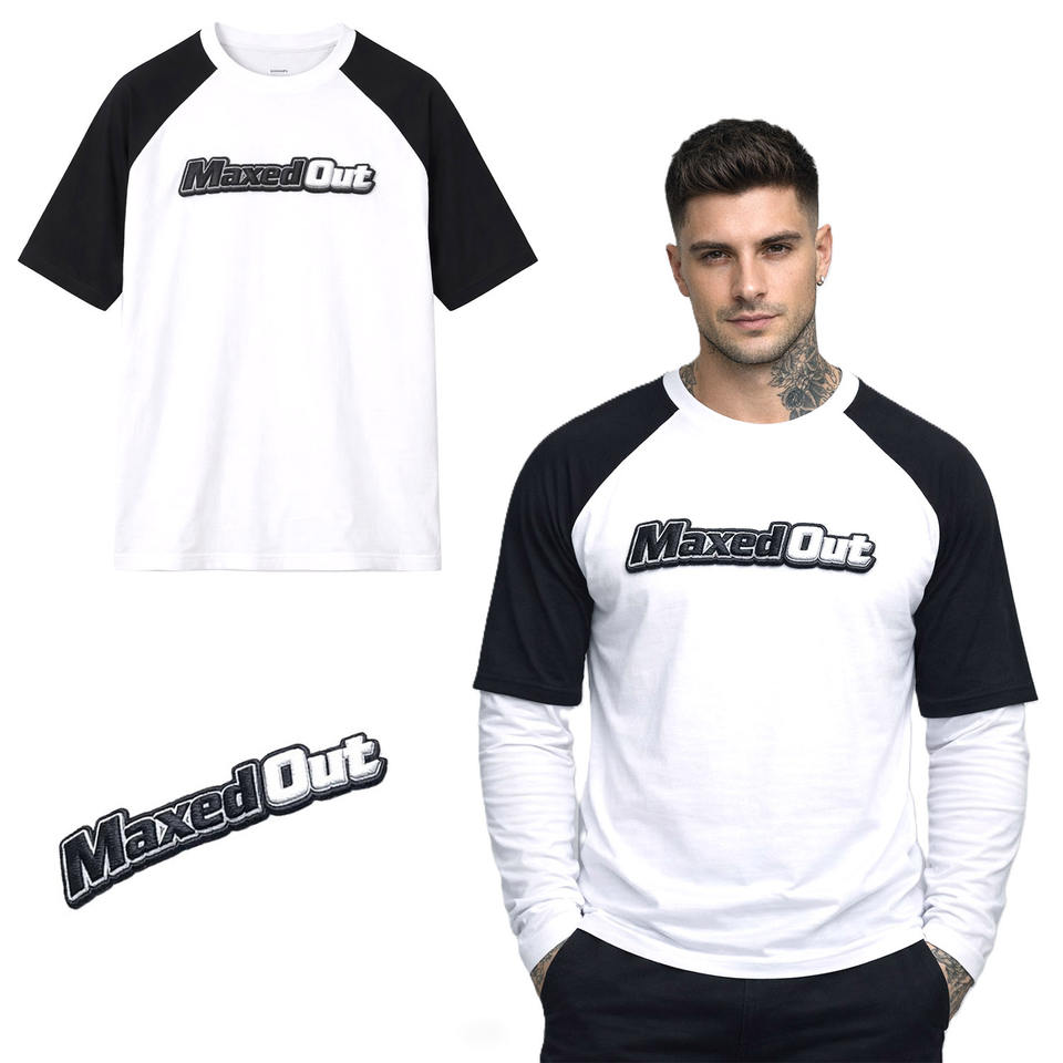 Camisetas de Hombre de Algodón Grueso con Mangas Raglán en Contraste, Logotipo Bordado Personalizado OEM al por Mayor, Estilo Urbano Informal, Fabricante