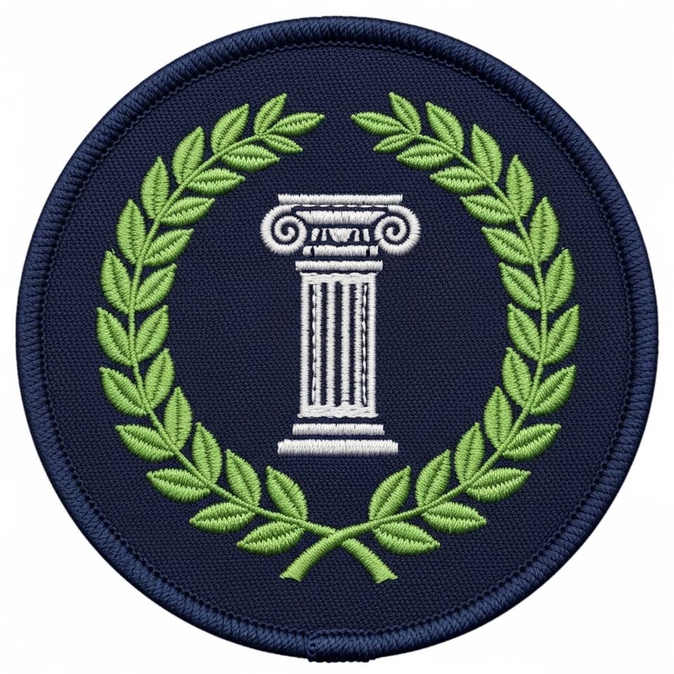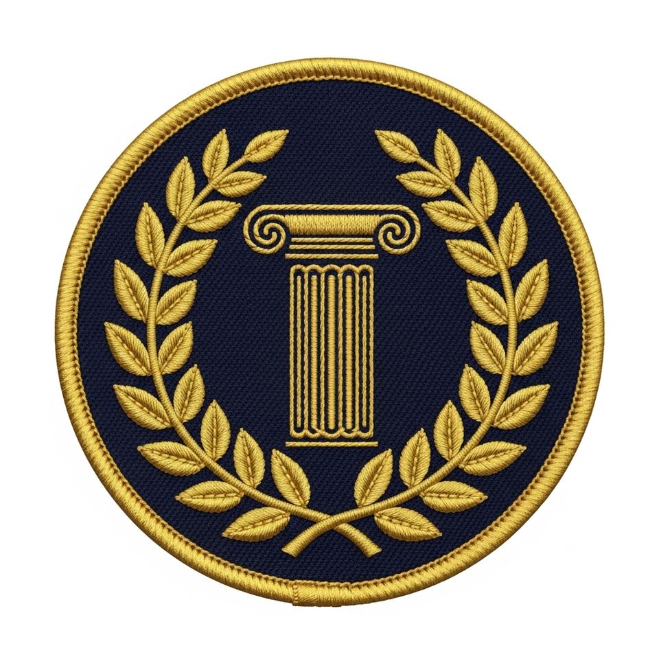 Parche Bordado Personalizado con Emblema de Pilar Masónico y Corona de Laurel, Azul Marino, Redondo, Insignia Fraternal para Blazers y Uniformes