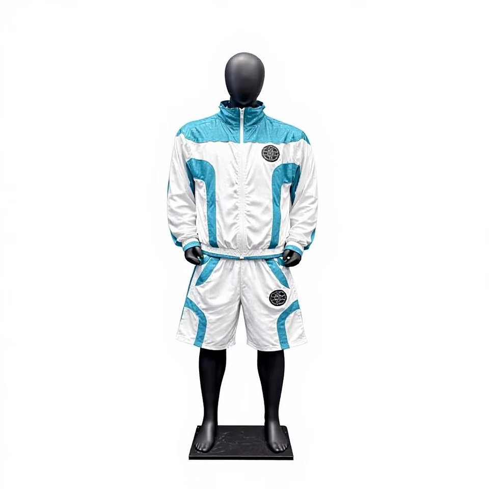 Conjunto Deportivo de Dos Piezas para Hombre, Bordado Personalizado, Chaqueta Cortavientos y Pantalones Cortos, 100% Poliéster, Secado Rápido, Estilo Casual Urbano