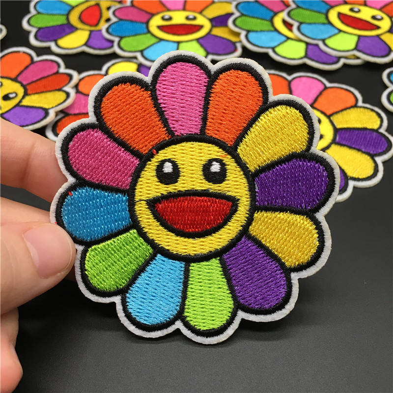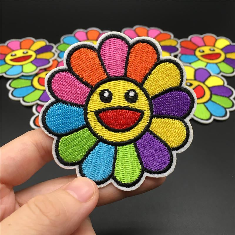 Parche Bordado Personalizado, Parches Termoadhesivos con Rayas, Insignias Decorativas, Parches para Planchar, Adhesivos para Ropa, Apliques de Girasol para Ropa