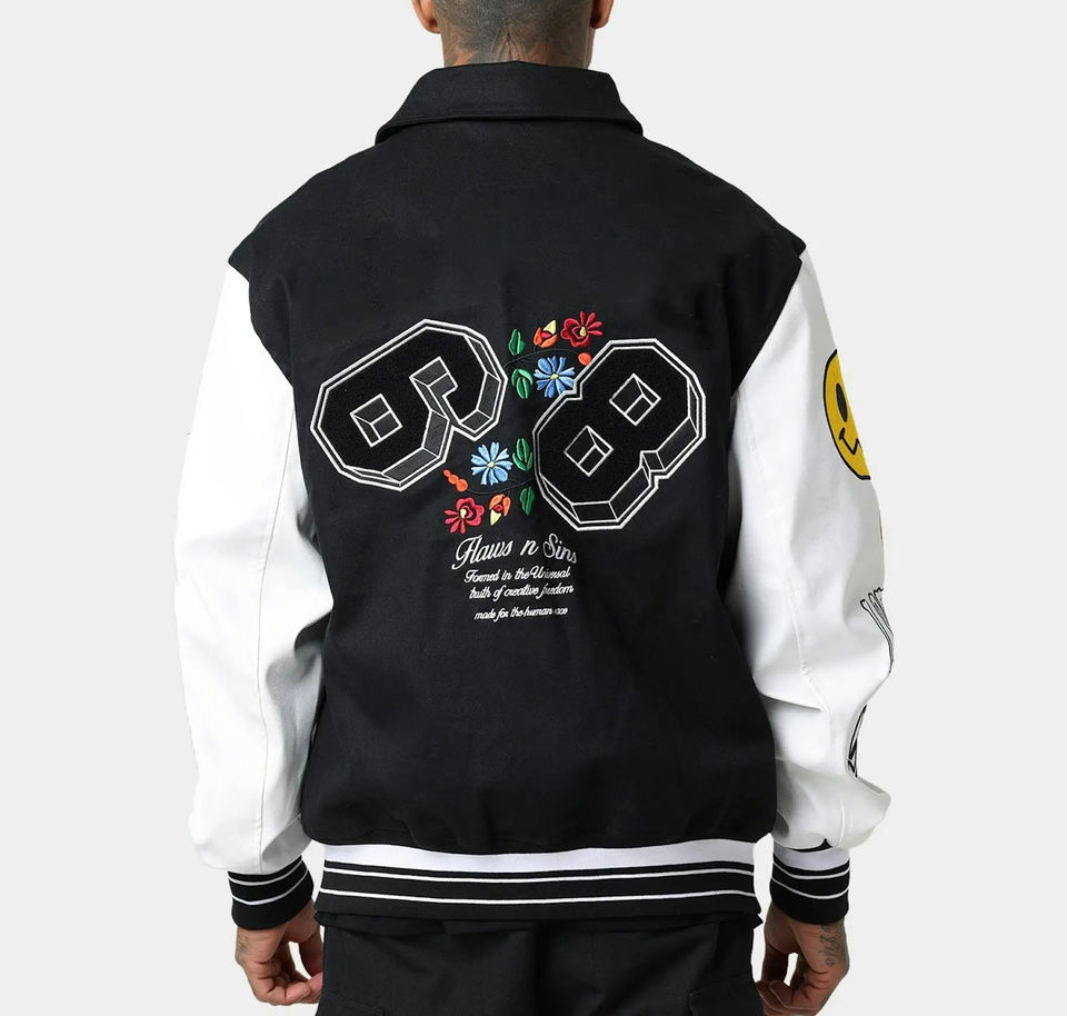 Chaqueta Universitaria de Béisbol para Hombre con Cuello Alto, Bordado Personalizado con Logotipo, Mangas de Cuero