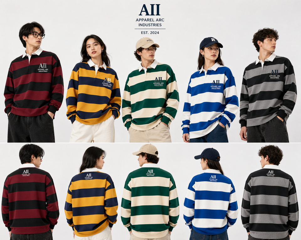 Camiseta de Rugby Bordada Personalizada con Rayas Multicolores, Ropa Casual Urbana, Sudaderas y Hoodies para Hombre, Proveedor Mayorista