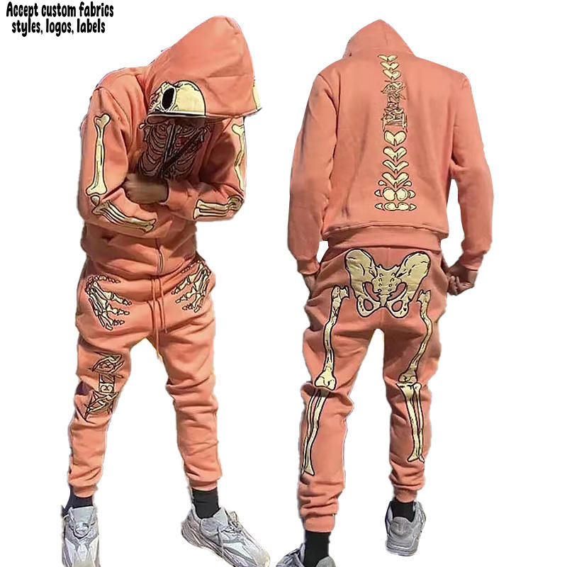 Conjuntos de Sudadera con Capucha y Pantalones de Chándal de Invierno para Hombre, Bordados Personalizados, Tejido Vintage, con Cremallera Completa, 100% Algodón Polar de Secado Rápido