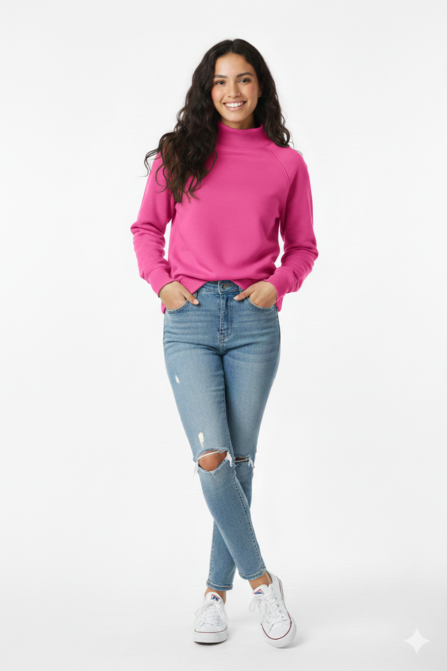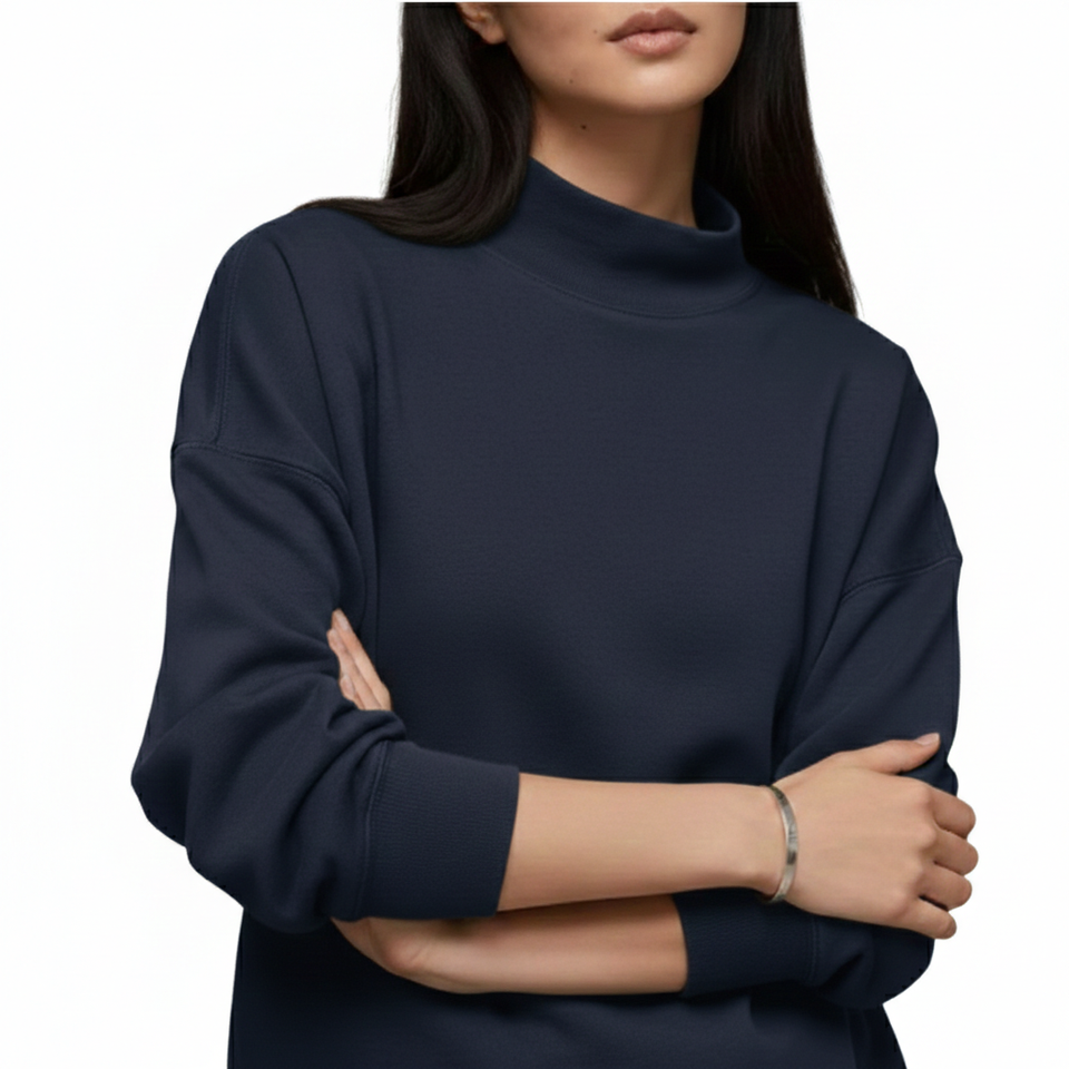 Sudadera Oversize de Mujer con Cuello Alto y Logotipo Frontal, Personalizada con Bordado, de Felpa Suave, Transpirable y Ecológica
