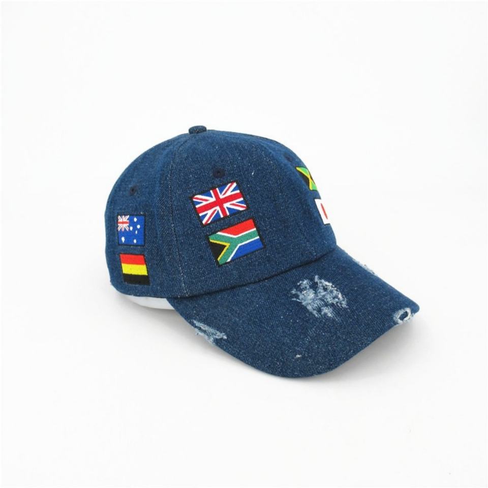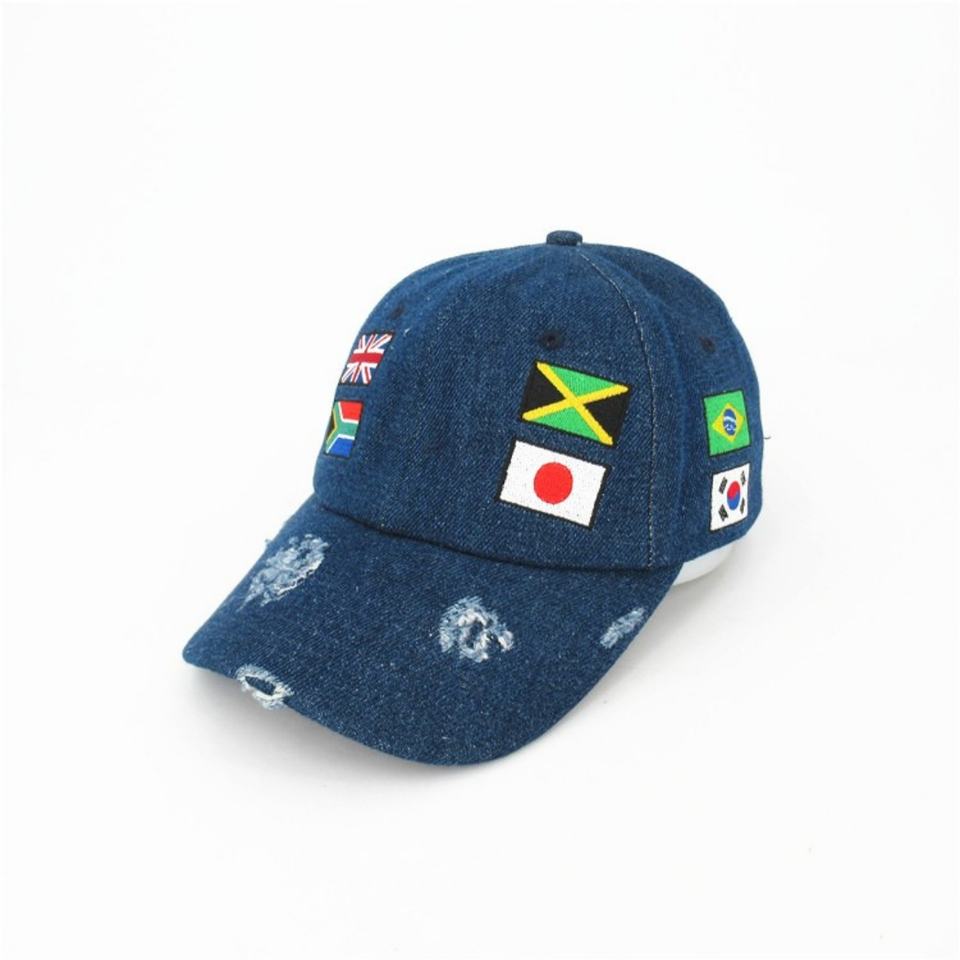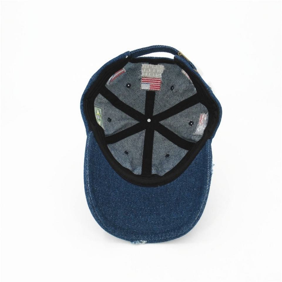 Gorra de mezclilla vintage bordada a medida con efecto desgastado, estilo de 5 paneles, imagen deportiva, característica de tela común y logotipo plano.