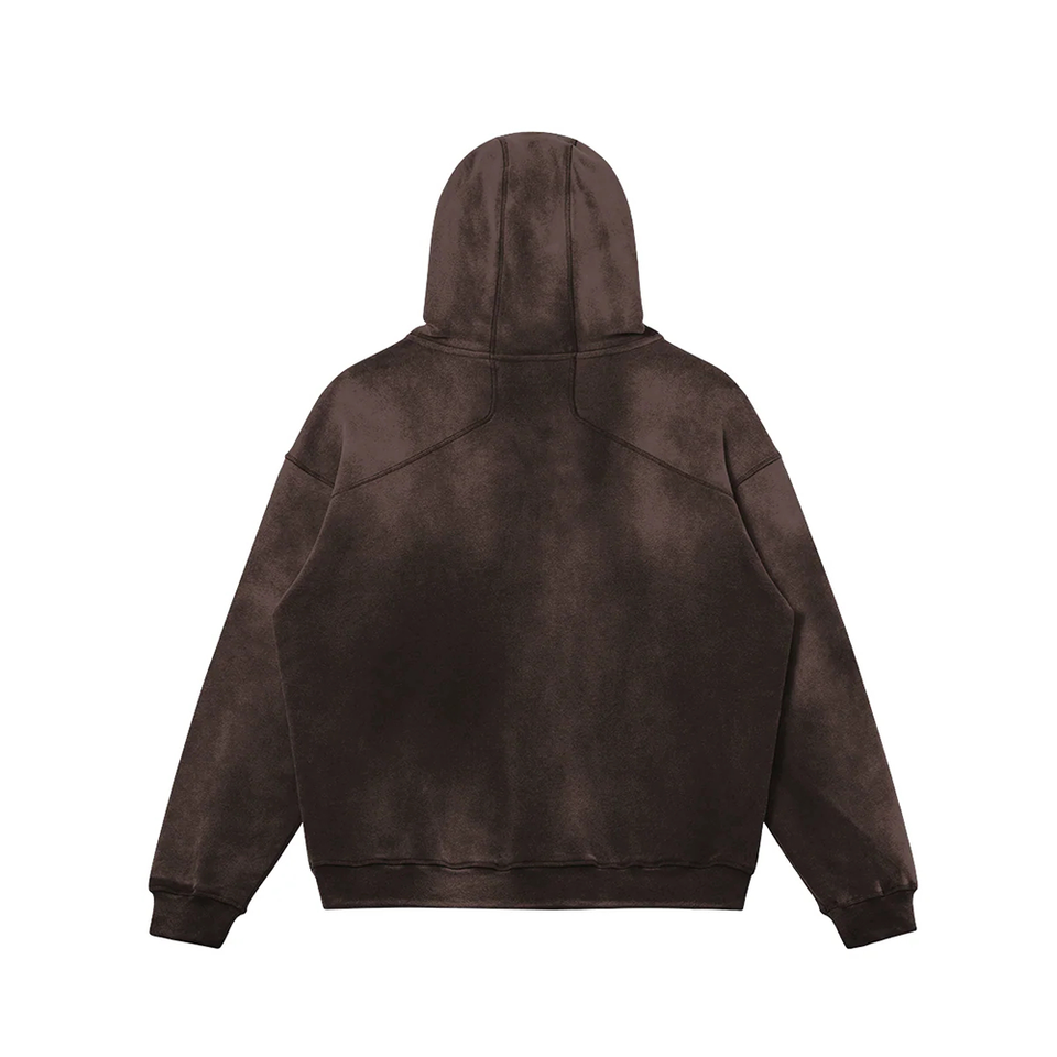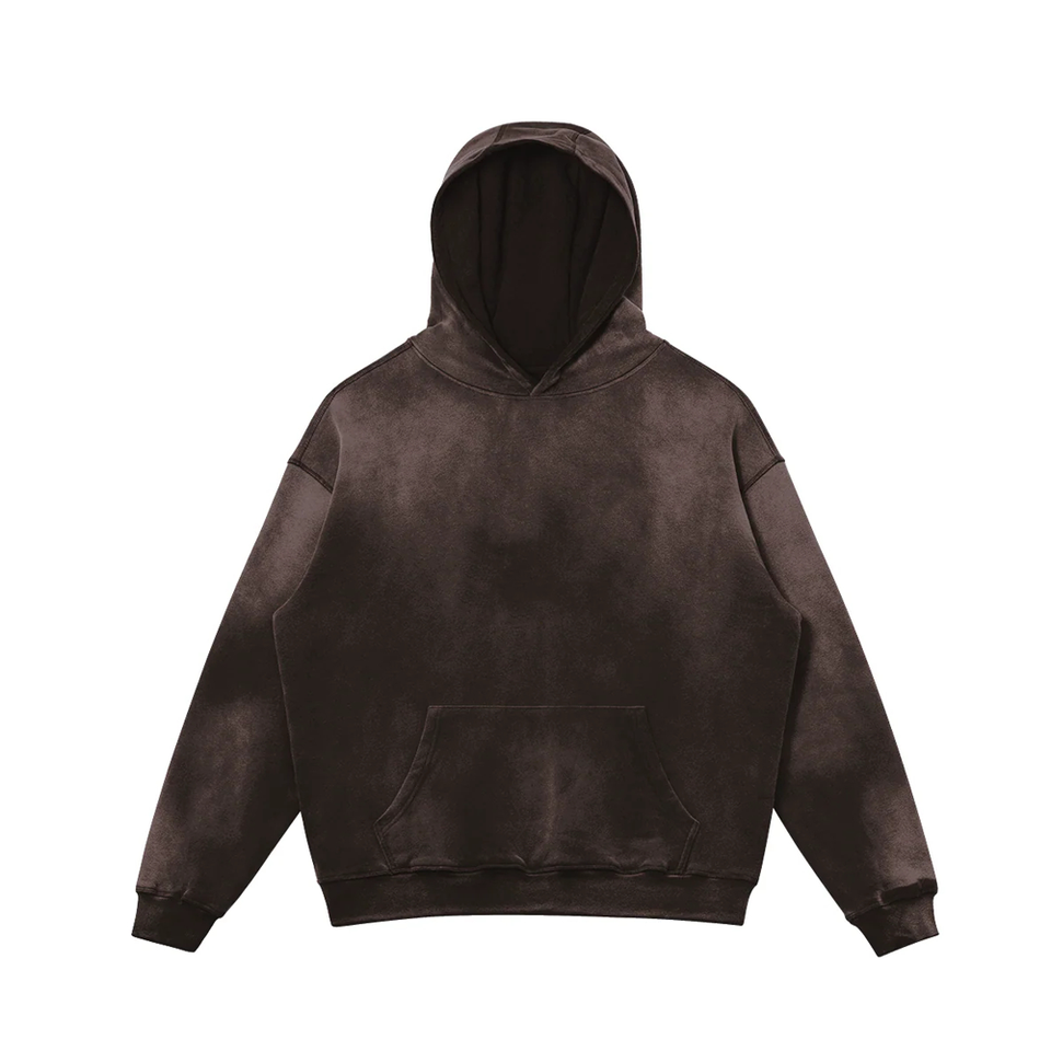 Sudadera con Capucha Personalizada Bordada de Invierno para Hombre, Estilo Urbano, Lavado Ácido, Algodón Grueso Desteñido al Sol, Estilo Vintage Desgastado