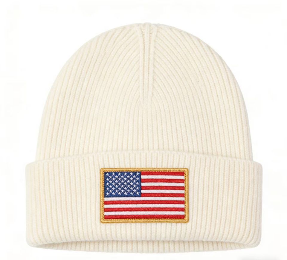 Gorro de Punto Personalizado con Bordado de Dibujos Animados del Día de la Independencia, Resistente al Desgaste, de Spandex/Algodón, para Otoño/Invierno