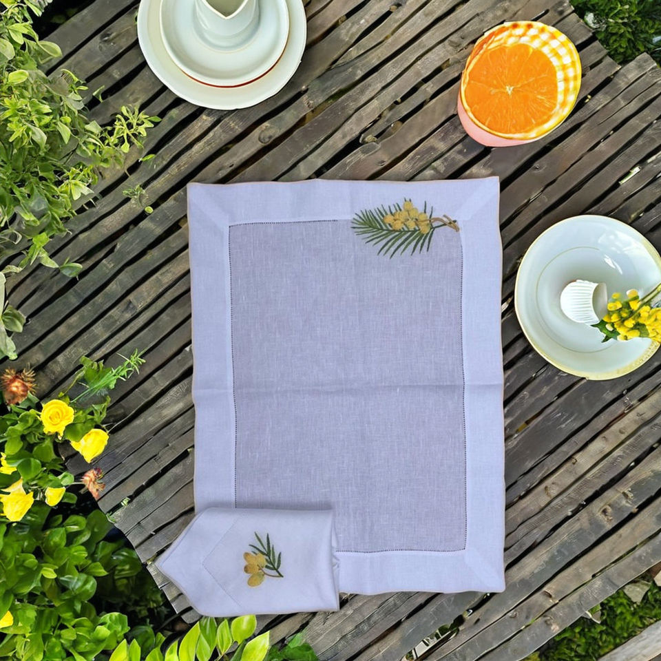 Juego de posavasos de mesa de lino de alta calidad, bordado personalizado, diseño de frutas de Palma, juego de servilletas y manteles individuales para vacaciones en hoteles en casa