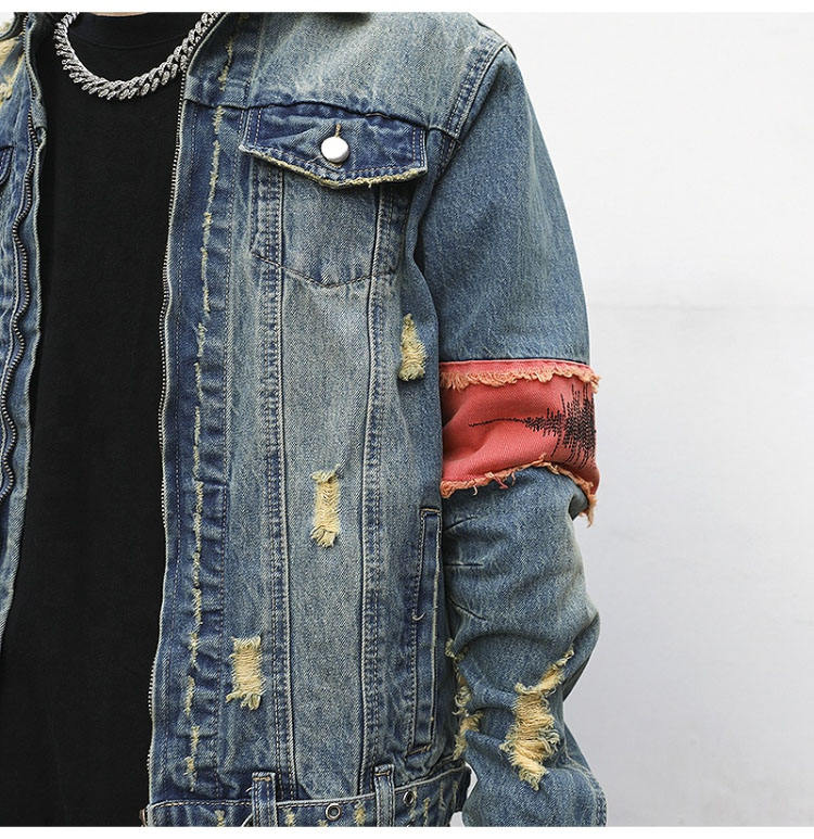 Chaquetas Vaqueras Desgastadas con Cremallera Completa y Bordado Personalizado para Hombre, Impermeables, Transpirables, con Hombros Caídos y Cuello Camisero, para Primavera